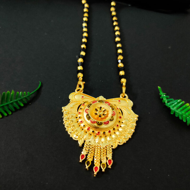 Explore the Latest Wedding Gold Mangalsutra Black moti Chain designs. Featuring stunning designs in gold-like jewelry. Elevate your wedding ensemble with our intricately crafted mangalsutra and feel confident on your special day.